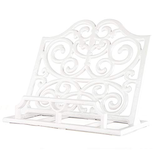 Vintage Cookbook Stand Cast Iron, Decorative Metal Cookbook Recipe Holder for Cookbooks or iPad Stands for Kitchen, White